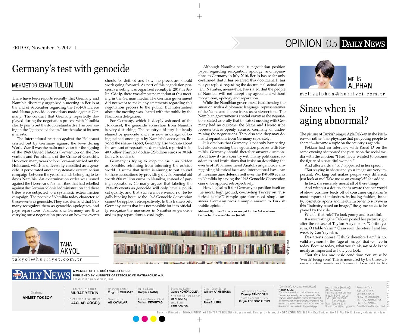 GERMANY’S TEST WITH GENOCIDE - HÜRRİYET DAILY NEWS - 17.11.2017