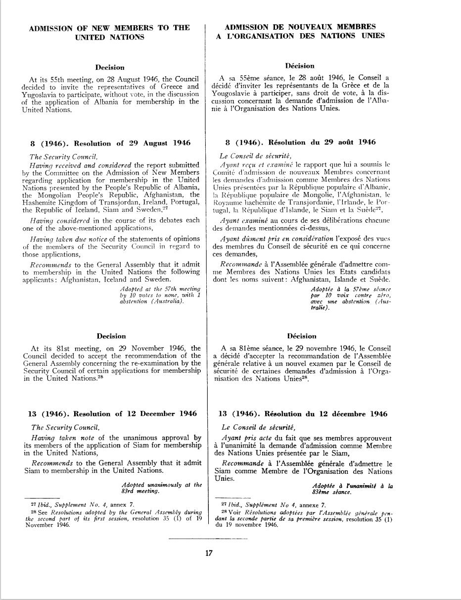 In: Resolutions and decisions of the Security Council, 1946. - S/INF/2/REV.1(I). - 1964. - p. 17. - (SCOR, 1st year).