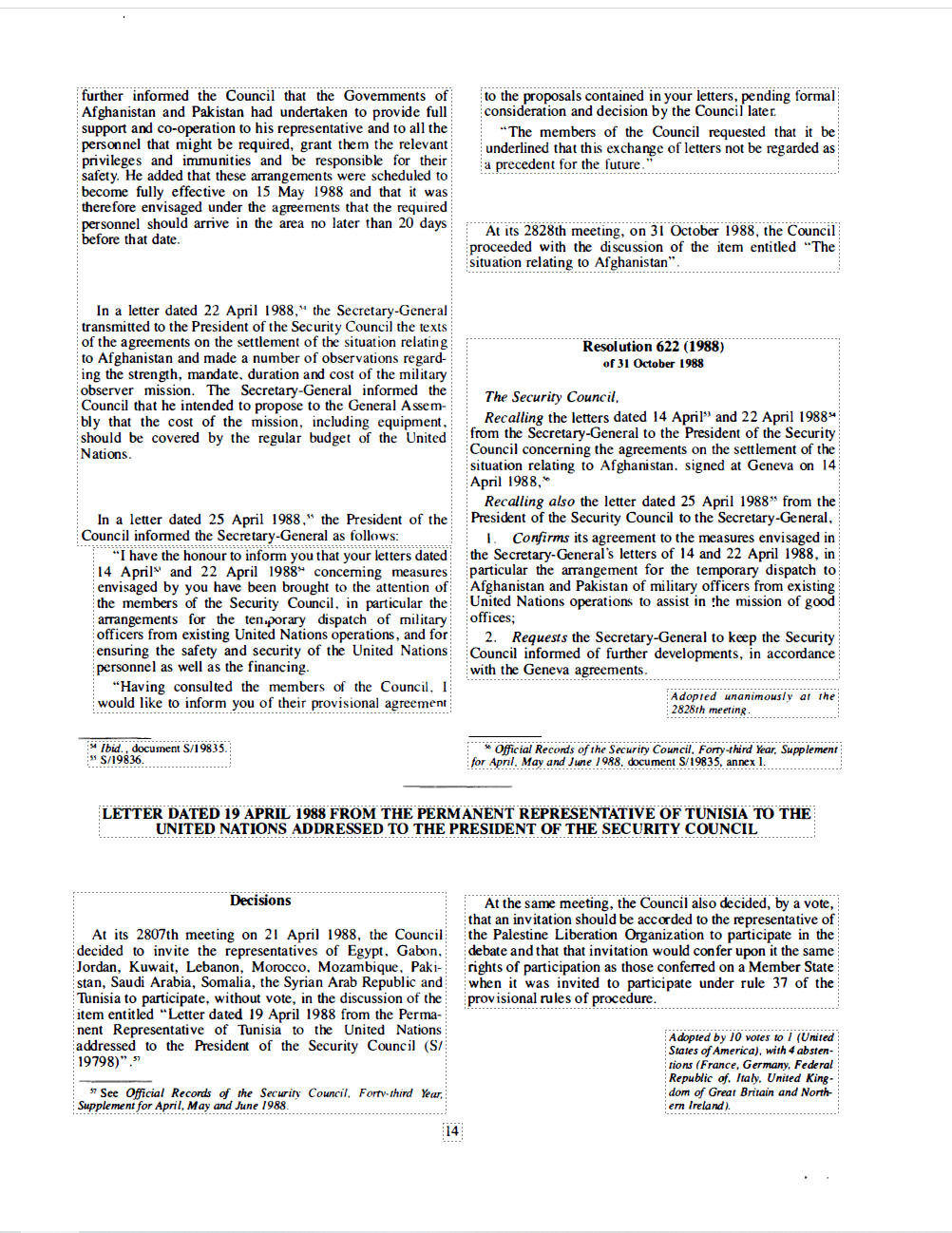 United Nations Security Council Resolution 622 (S/RES/622), adopted on October 31, 1988, established the United Nations Good Offices Mission in Afghanistan and Pakistan (UNGOMAP) in the wake of the Geneva Accords.
