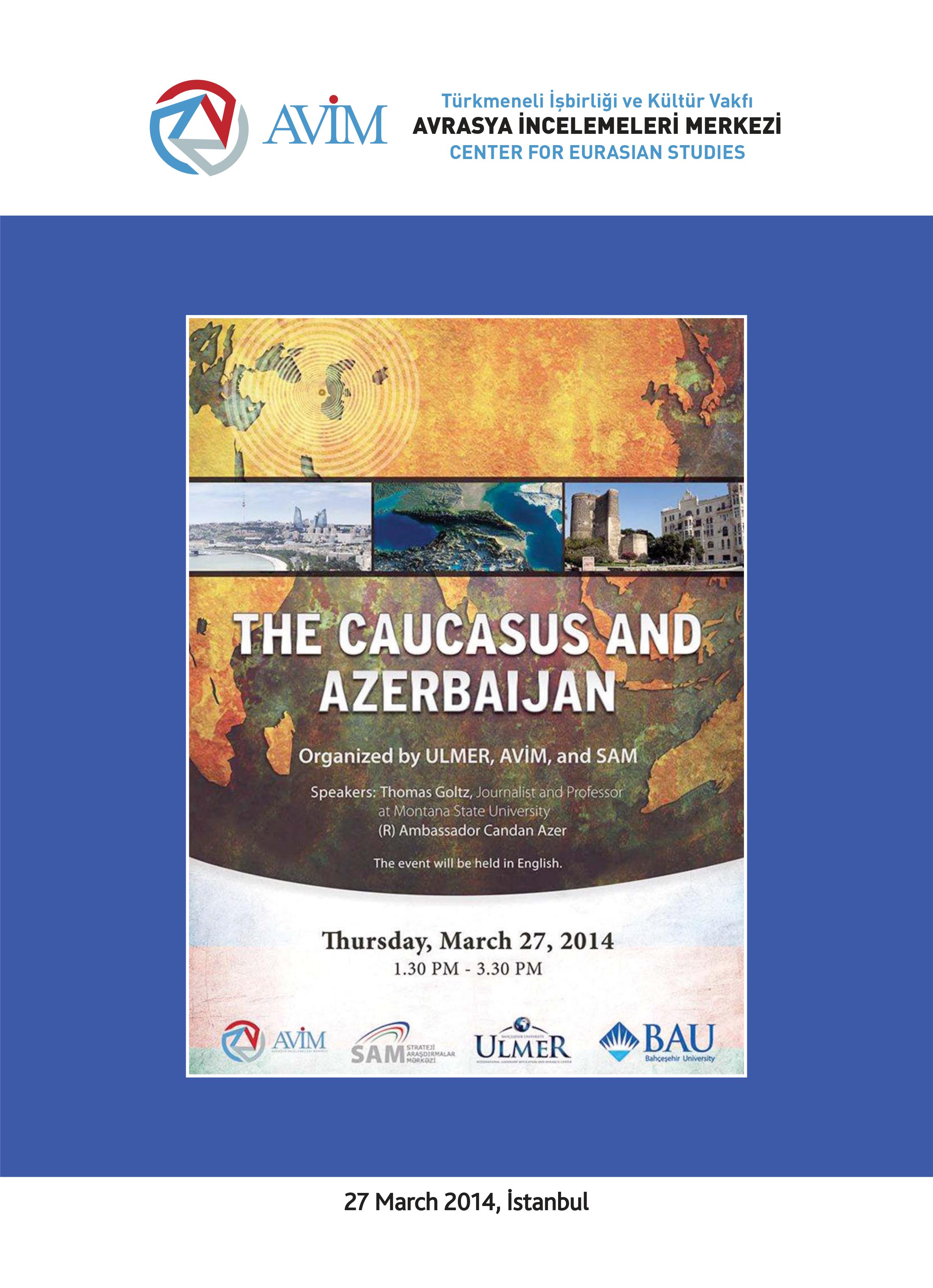 Bahçeşehir University International Leadership Application and Research Center (ULMER), in cooperation with Azerbaijan Strategic Research Center and Center for Eurasian Studies (AVİM), organized a meeting on “Caucasus and Azerbaijan” 27th of March, 2014. In the meeting that was moderated by AVİM Director R. Ambassador Alev Kılıç, Mr. Thomas Goltz and R. Ambassador Candan Azer made keynote presentations.