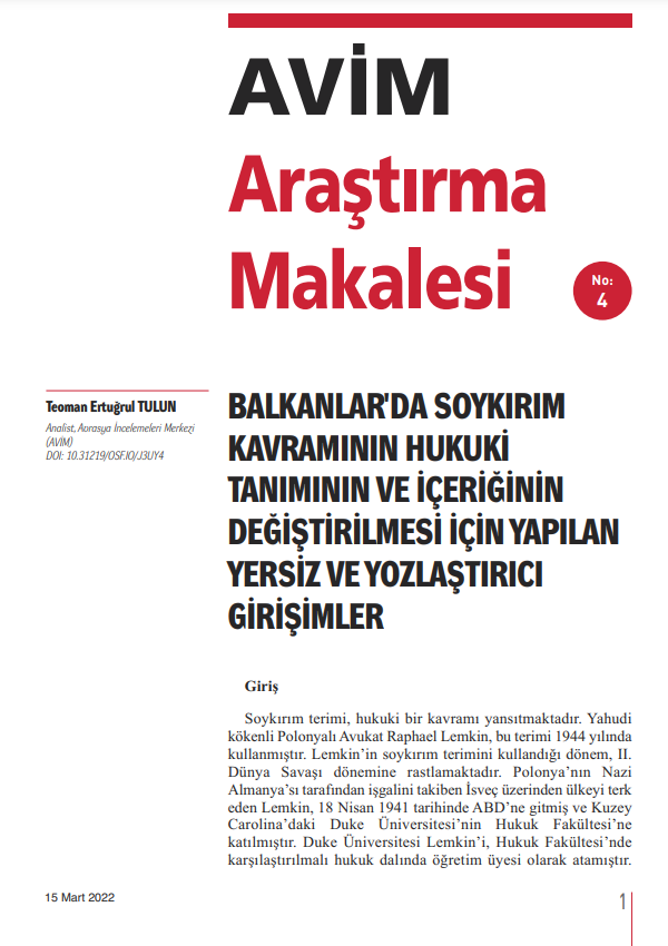 AVİM, as an independent and non-profit think-tank, has been carrying this voluminous work with the meticulous and often self-sacrificing work of a limited number of staff. The AVİM staff deserves sincere thanks and warm congratulations for their unrelenting efforts, conscientious, and fruitful work. On behalf of AVİM, I would also like to express our thanks and gratitude to all who have shown interest in and given support to our work and activities.