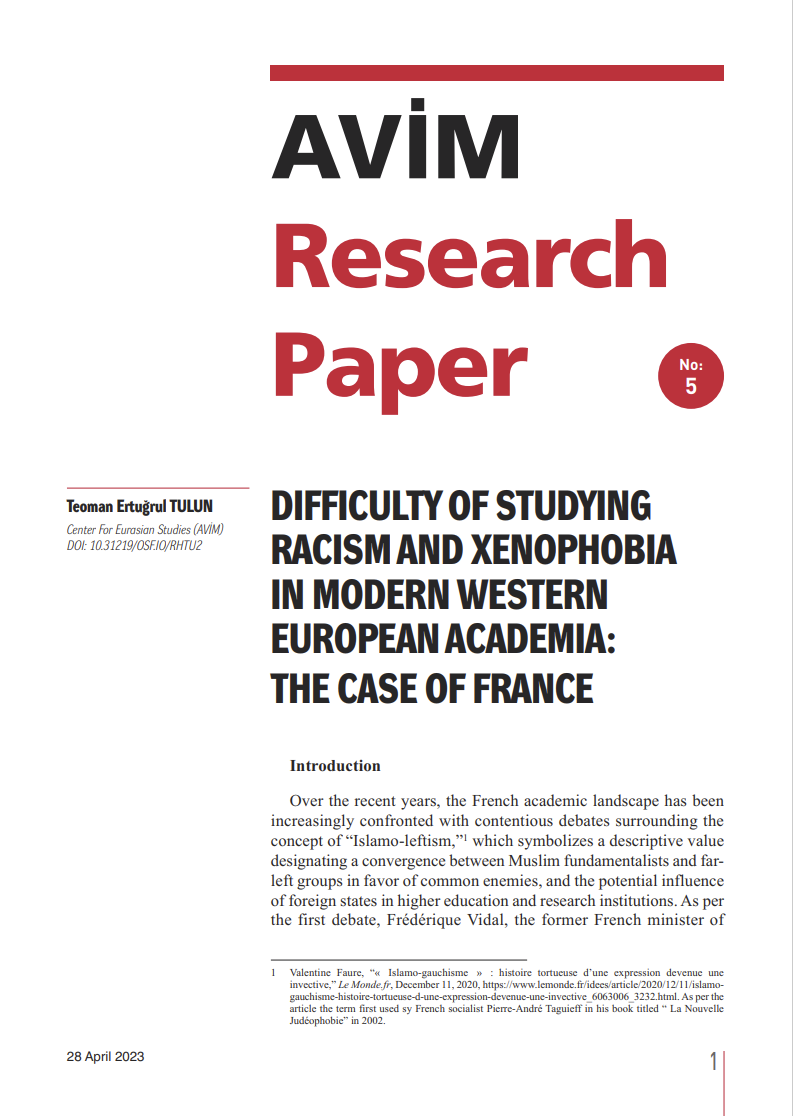 DIFFICULTY OF STUDYING RACISM AND XENOPHOBIA IN MODERN WESTERN EUROPEAN ACADEMIA: THE CASE OF FRANCE