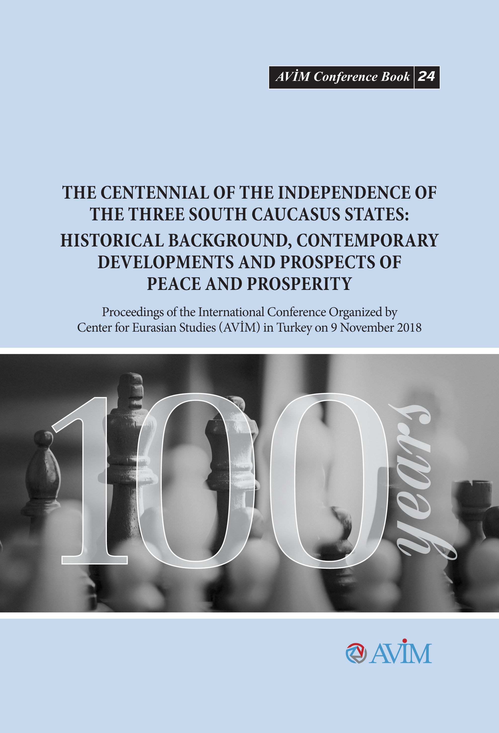 THE CONFERENCE PROCEEDINGS BOOK OF THE CONFERENCE TITLED “THE CENTENNIAL OF THE INDEPENDENCE OF THE THREE SOUTH CAUCASUS STATES: HISTORICAL BACKGROUND, CONTEMPORARY DEVELOPMENTS AND PROSPECTS OF PEACE AND PROSPERITY” HAS BEEN PUBLISHED The conference proceedings book of the international conference titled “The Centennial of the Independence of the Three South Caucasus States: Historical Background, Contemporary Developments and Prospects of Peace and Prosperity” organized by AVIM and held in Ankara on 9 November 2018 has been published.