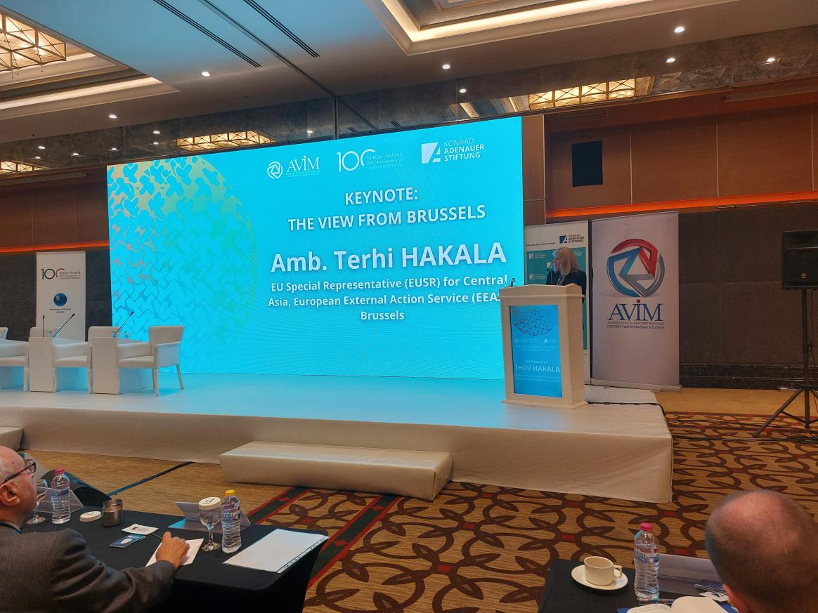 EUSR’S KEYNOTE SPEECH AT EU-TÜRKİYE COOPERATION IN CENTRAL ASIA AND SOUTH CAUCASUS CONFERENCE BY KAS AND AVIM This is the keynote speech that was delivered by the EU Special Representative (EUSR) for Central Asia Ambassador Terhi Hakala at the conference titled “EU-Türkiye Cooperation in Central Asia and South Caucasus: Towards Sustainable Engagement in Energy and Connectivity” that was jointly organized by the Centre for Eurasian Studies (AVİM) and Konrad-Adenauer-Stiftung Türkiye (KAS Türkiye) on 22 February 2024 in Ankara.
