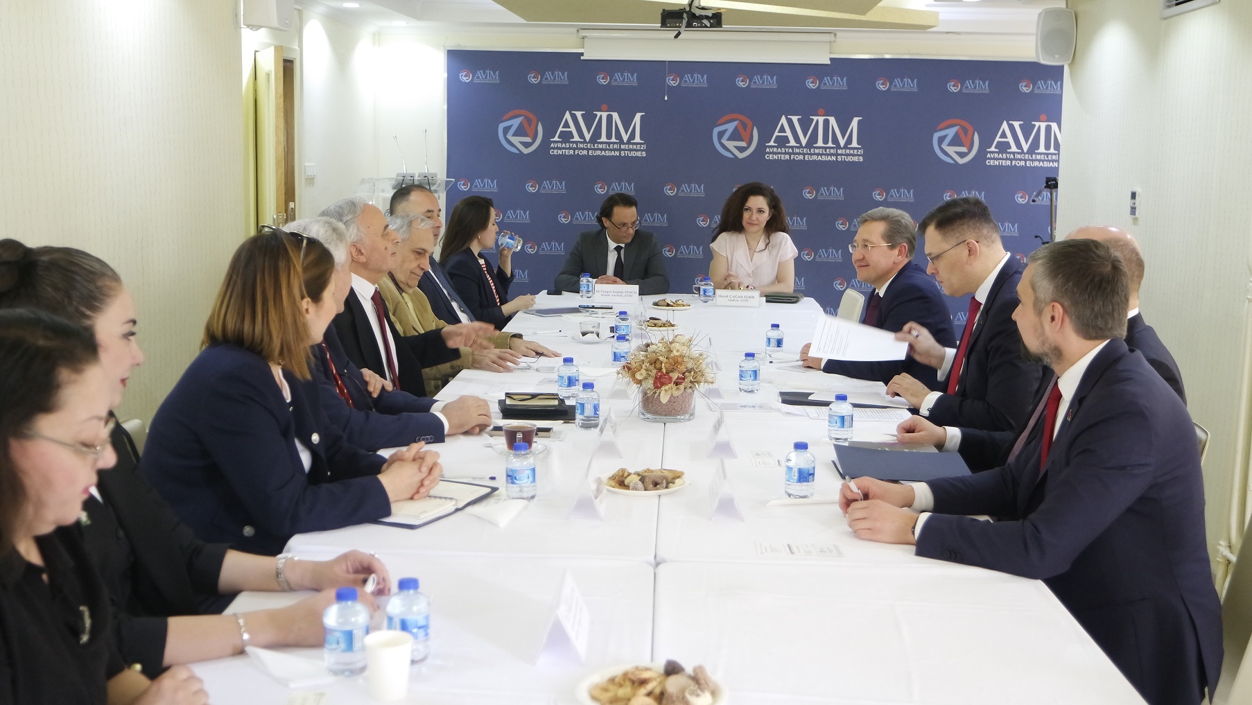 ROUNDTABLE AT AVİM WITH THE DEPUTY MINISTER OF FOREIGN AFFAIRS OF THE REPUBLIC OF BELARUS MR. YURY AMBRAZEVICH On 3 April 2024, a roundtable meeting with the Deputy Minister of Foreign Affairs of the Republic of Belarus Mr. Yury Ambrazevich and his delegation was held at AVİM.
