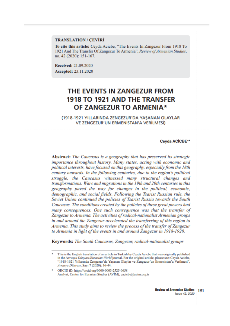 THE EVENTS IN ZANGEZUR FROM 1918 TO 1921 AND THE TRANSFER OF ZANGEZUR TO ARMENIA -