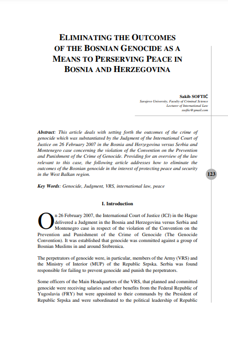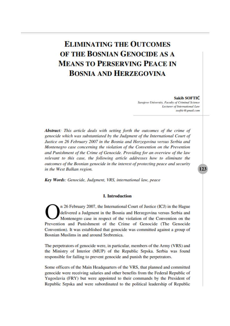 ELIMINATING THE OUTCOMES OF THE BOSNIAN GENOCIDE AS A MEANS TO PERSERVING PEACE IN BOSNIA AND HERZEGOVINA -