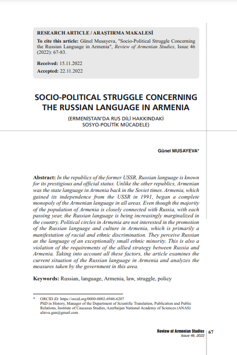 SOCIO-POLITICAL STRUGGLE CONCERNING THE RUSSIAN LANGUAGE IN ARMENIA -