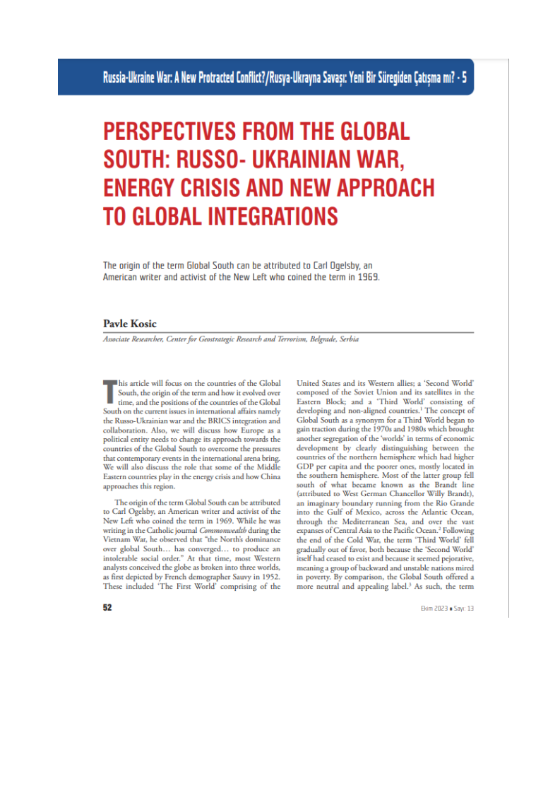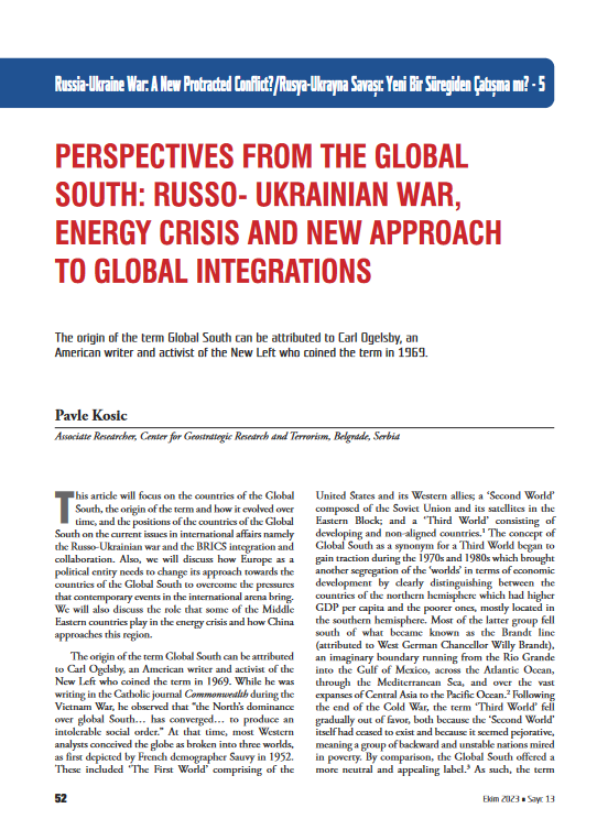 PERSPECTIVES FROM THE GLOBAL SOUTH: RUSSO- UKRAINIAN WAR, ENERGY CRISIS AND NEW APPROACH TO GLOBAL INTEGRATIONS -