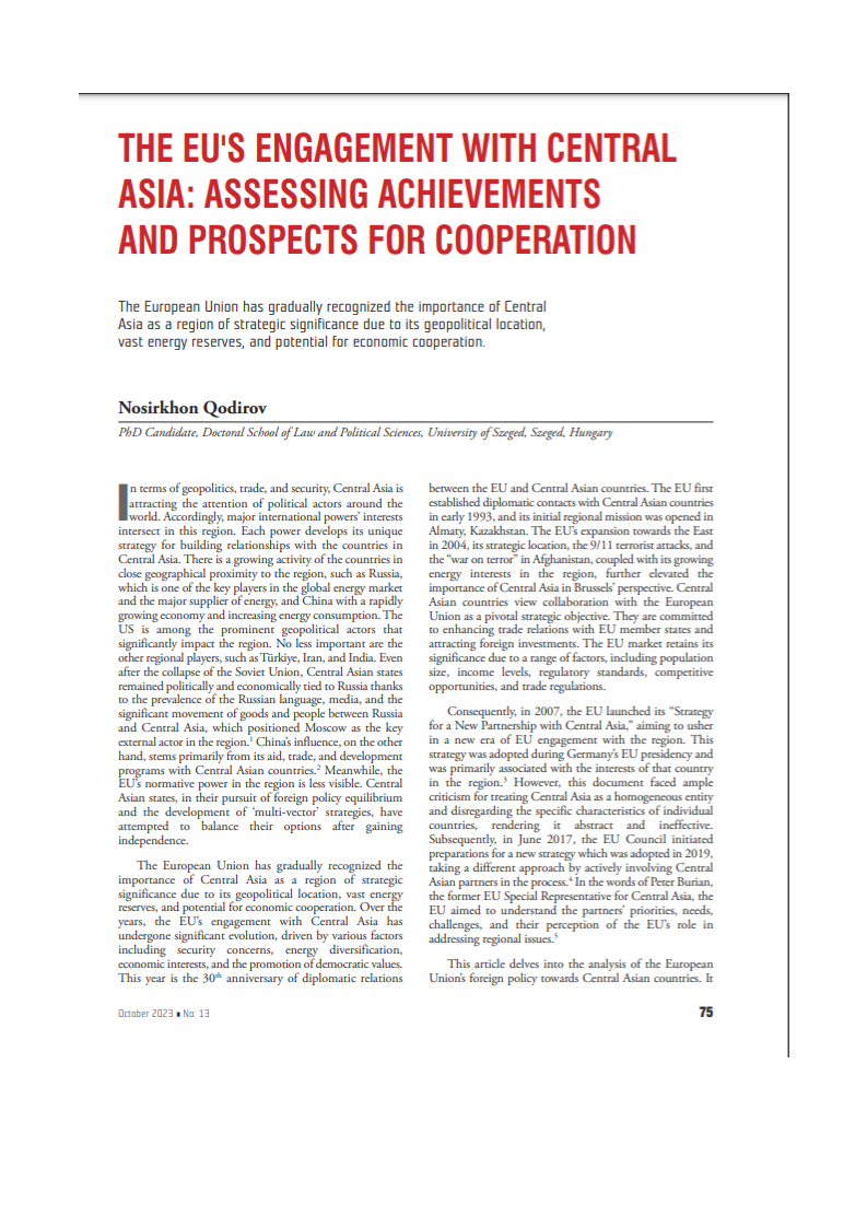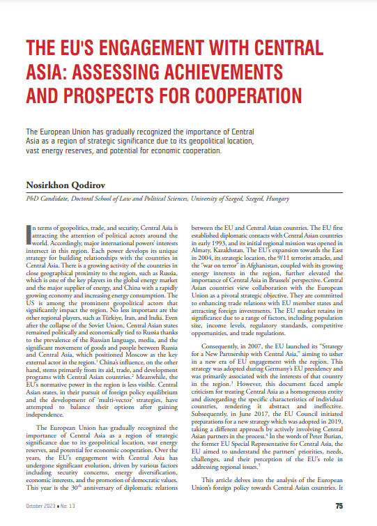 THE EU'S ENGAGEMENT WITH CENTRAL ASIA: ASSESSING ACHIEVEMENTS AND PROSPECTS FOR COOPERATION -