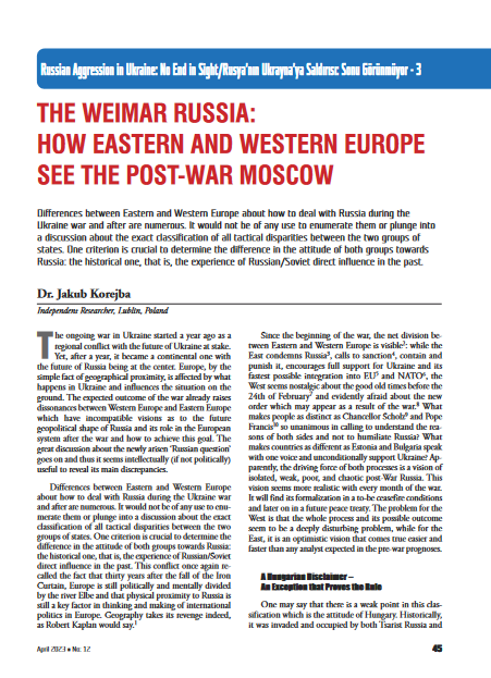 THE WEIMAR RUSSIA: HOW EASTERN AND WESTERN EUROPE SEE THE POST-WAR MOSCOW -