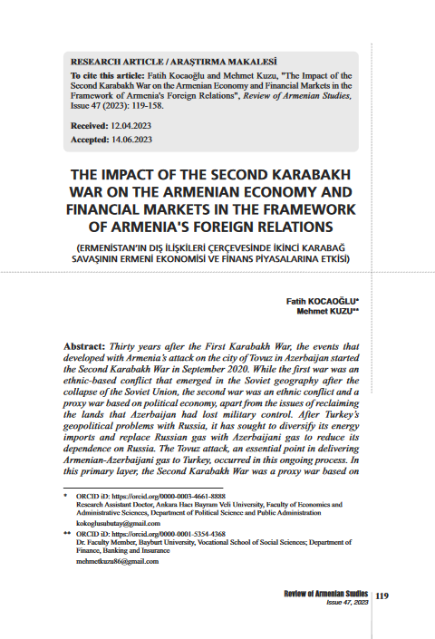 THE IMPACT OF THE SECOND KARABAKH WAR ON THE ARMENIAN ECONOMY AND FINANCIAL MARKETS IN THE FRAMEWORK OF ARMENIA'S FOREIGN RELATIONS -