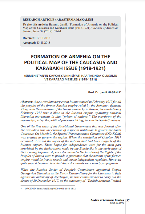 FORMATION OF ARMENIA ON THE POLITICAL MAP OF THE CAUCASUS AND KARABAKH ISSUE (1918-1921) -