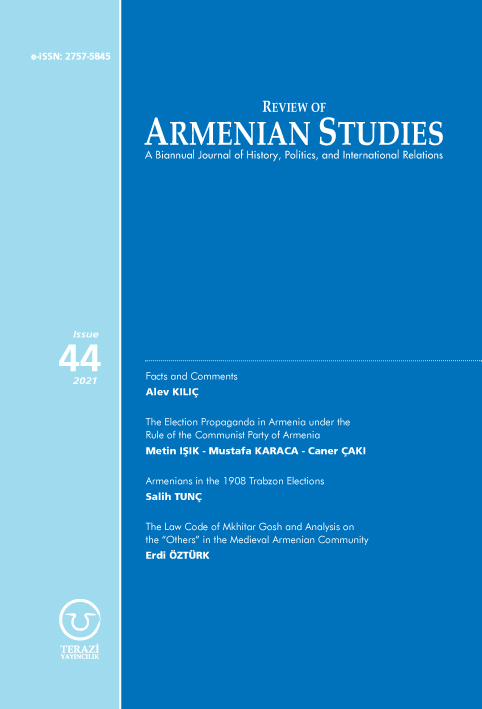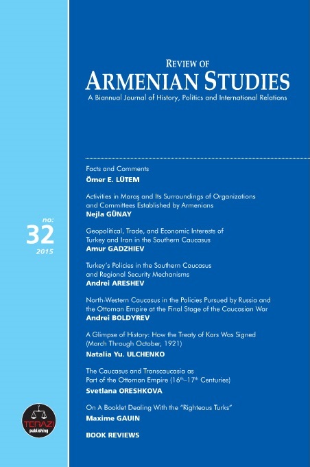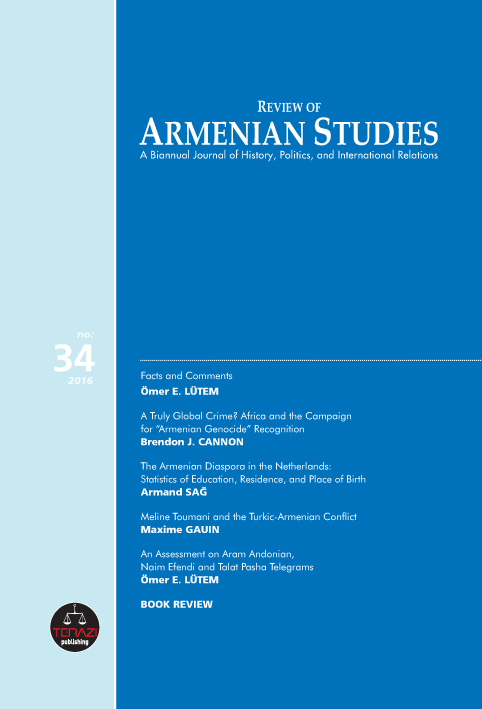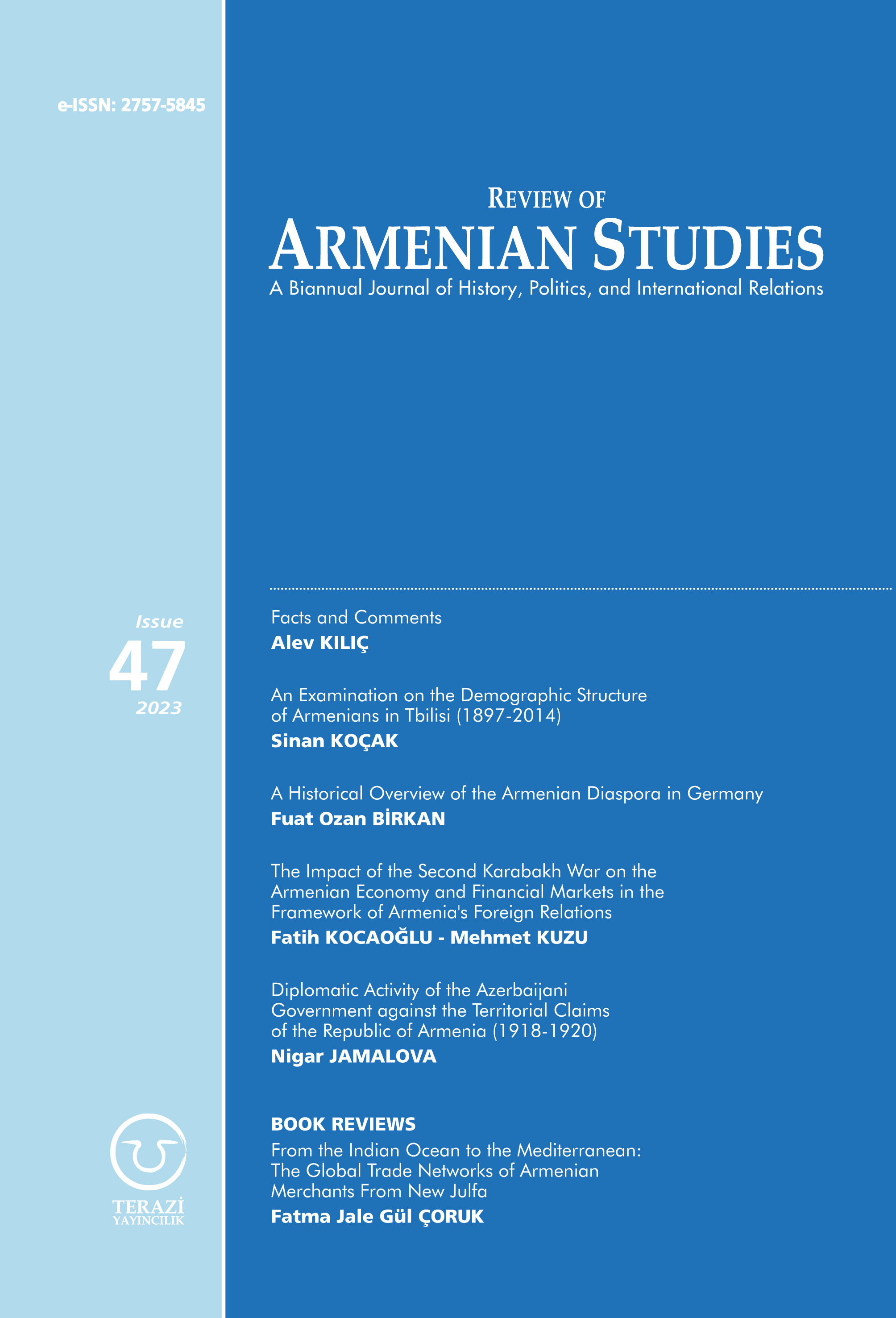 Koçak, Sinan. “An Examination on the Demographic Structure of Armenians in Tbilisi (1897-2014).” Review of Armenian Studies, no. 47 (July 22, 2023): 63–95.