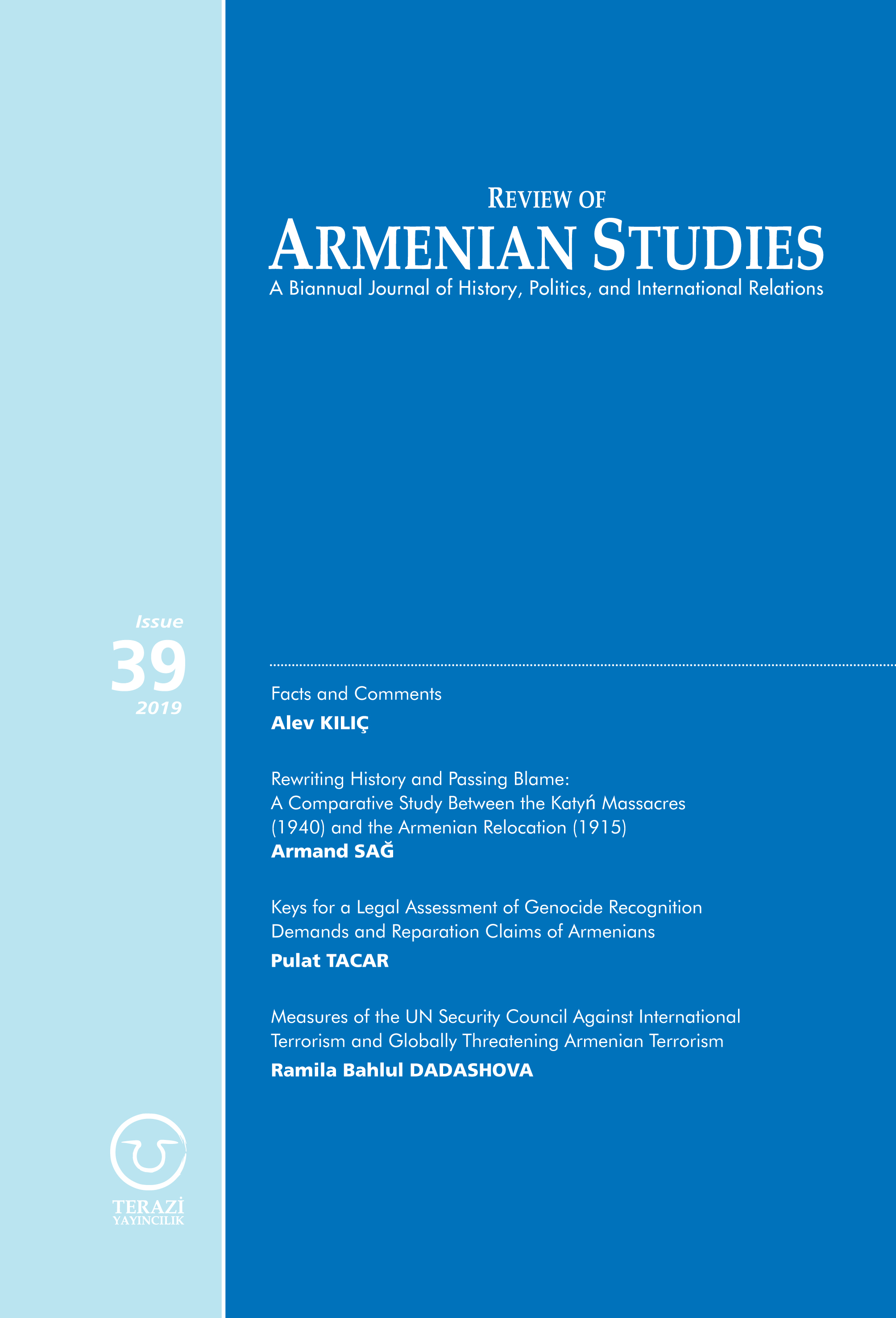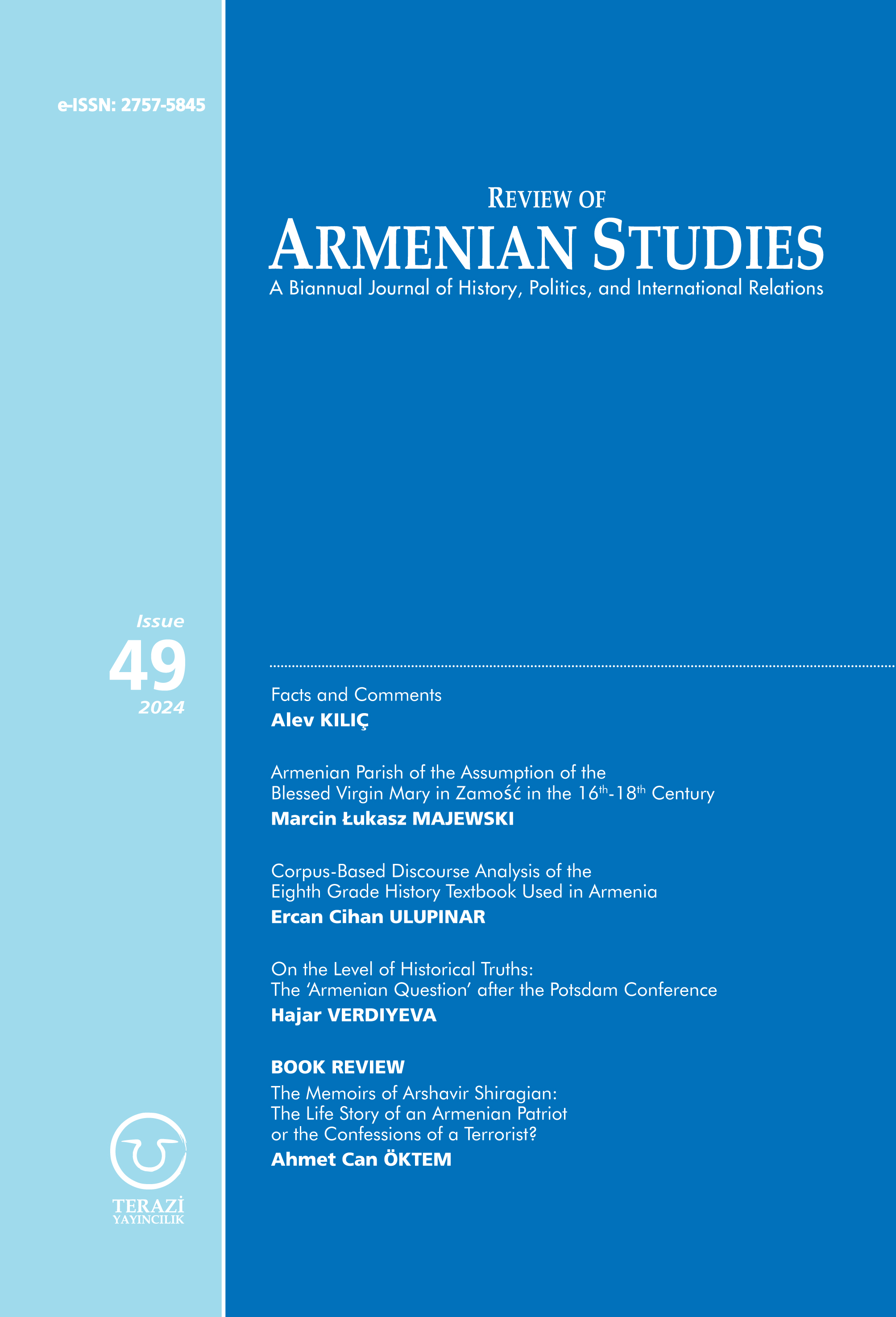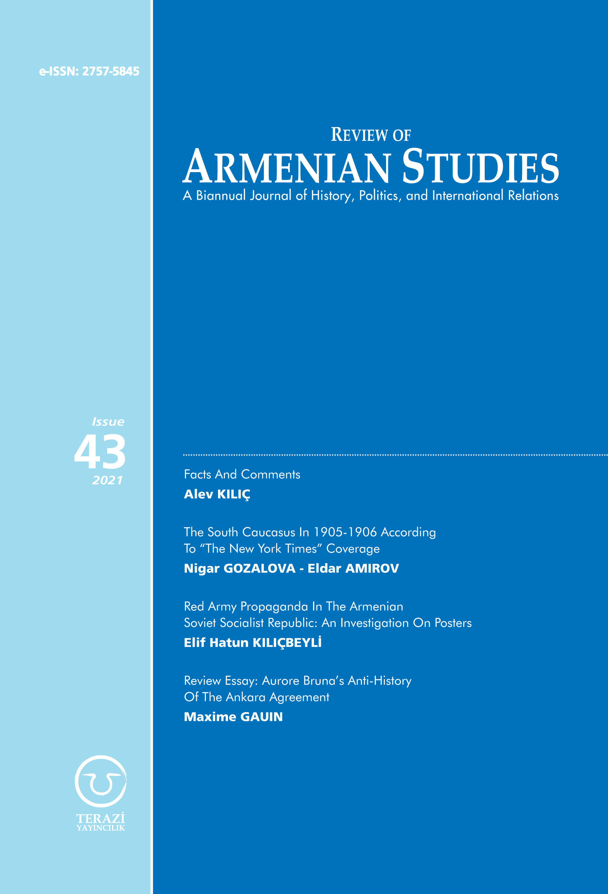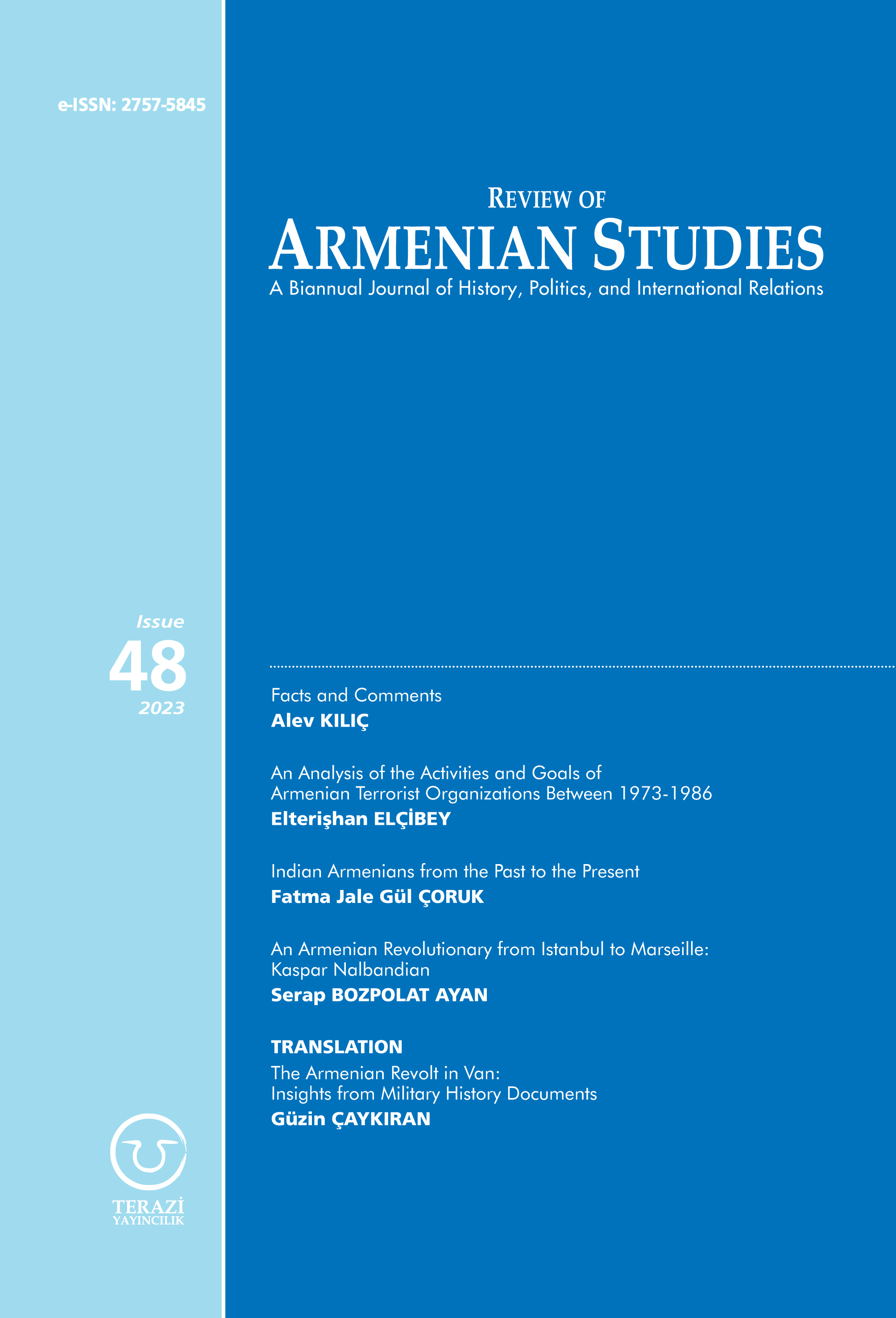 The Review of Armenian Studies (RAS) is a biannual academic journal that was established in 2002 with the aim of publishing academic papers to stimulate inter-disciplinary debate between academics and practitioners on topics relating to Armenian Studies. RAS invites paper submissions on any subject related to the journal’s scope of research, which include: