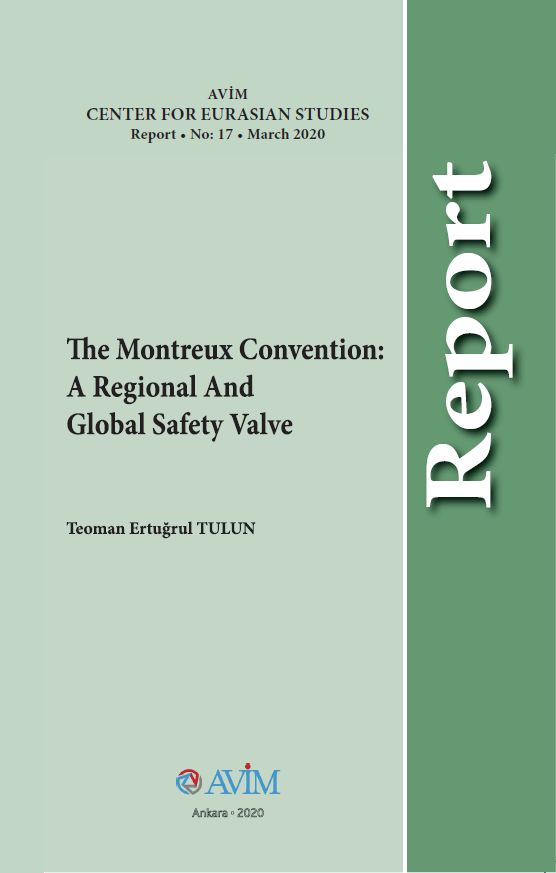 AVİM Analisti Teoman Ertuğrul Tulun tarafından İngilizce olarak yazılan ve Mart 2020’de yayımlanan “Montreux Sözleşmesi: Bölgesel ve Küresel Güvenlik Vanası” başlıklı AVİM raporu, Montreux Sözleşmesi'ne kadar olan dönemde Türk Boğazlarında uygulan rejiminin tarihsel arka planını ele almakta ve Sözleşme’nin temel maddelerinin ayrıntılı analizini yapmaktadır. Rapor ayrıca, krizlerle dolu günümüz dünyasında Sözleşme ile ilgili olarak ortaya çıkan güncel gelişmeler üzerinde durmakta ve Montreux Boğazlar Sözleşmesinin günümüz dünyasında işlevsel bir bölgesel ve küresel emniyet vanası olmaya devam ettiği görüşünü ortaya koymaktadır.