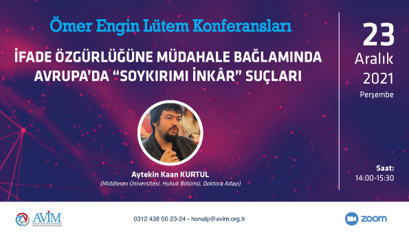 2021 yılı Ömer Engin Lütem Konferansları'nın on ikincisi, Aytekin Kaan Kurtul’un konuşmacı olduğu “İfade Özgürlüğüne Müdahale Bağlamında Avrupa’da ‘Soykırımı İnkâr’ Suçları” başlıklı konferans 23 Aralık 2021 Perşembe günü çevrim içi olarak gerçekleşmiştir.