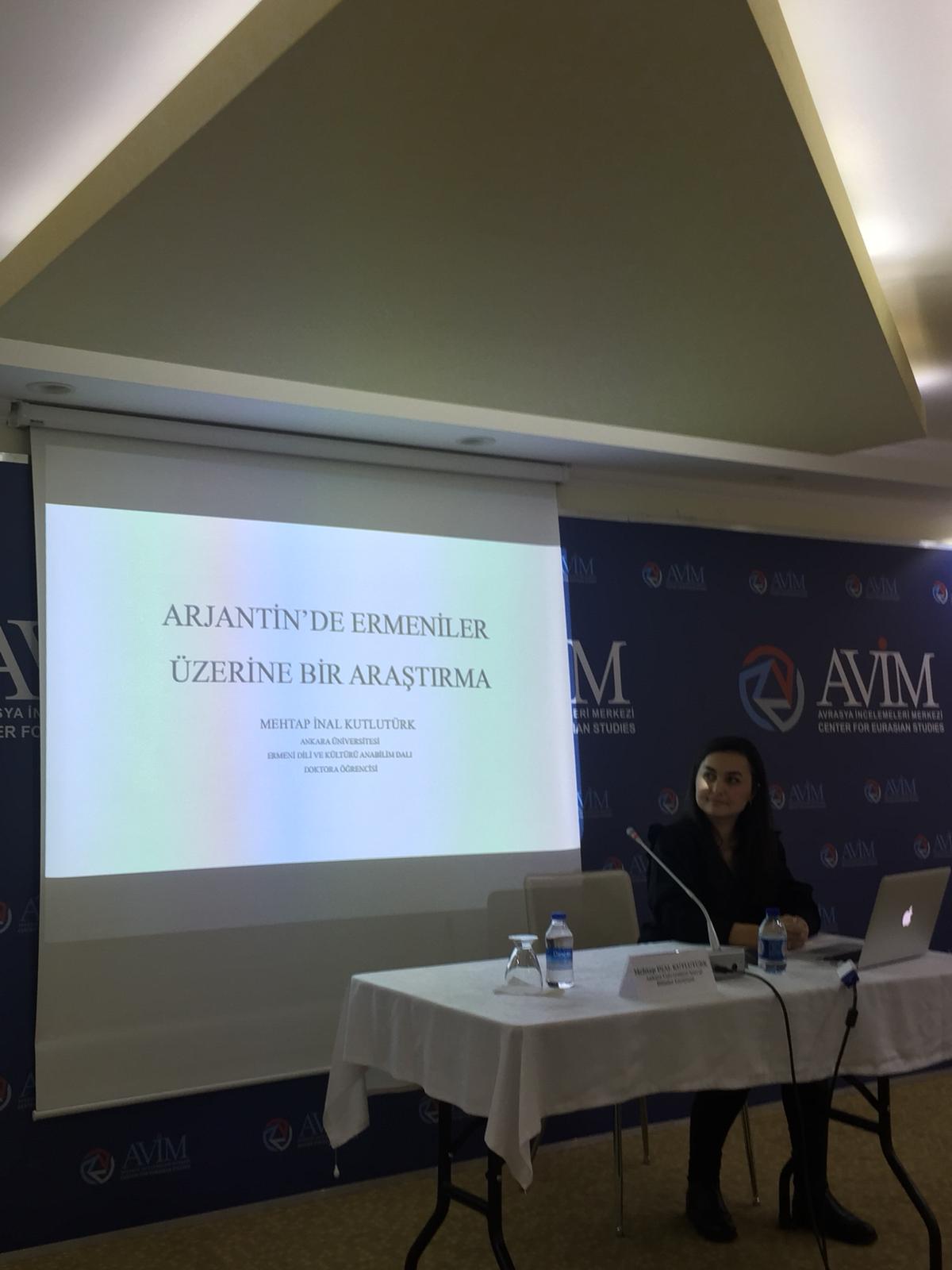 4 Aralık 2019 Çarşamba günü, Ankara Üniversitesi Sosyal Bilimler Enstitüsü Ermeni Dili ve Kültürü Anabilim Dalı doktora öğrencisi Mehtap İnal Kutlutürk’ün konuşmacı olduğu “Arjantin’de Ermeniler Üzerine Bir Araştırma” başlıklı konferans AVİM’de gerçekleştirildi.