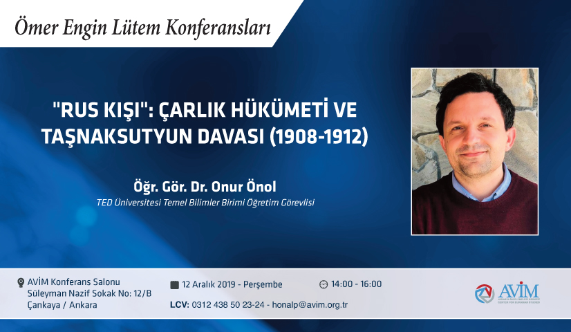 2019 yılı Ömer Engin Lütem Konferanslarının sonuncusu, 12 Aralık 2019 Perşembe günü, TED Üniversitesi Temel Bilimler Birimi Öğretim Görevlisi Doktor Onur Önol’un konuşmacı olacağı “Rus Kışı": Çarlık hükümeti ve Taşnaksutyun Davası (1908-1912) başlıklı konferansla devam edecektir.