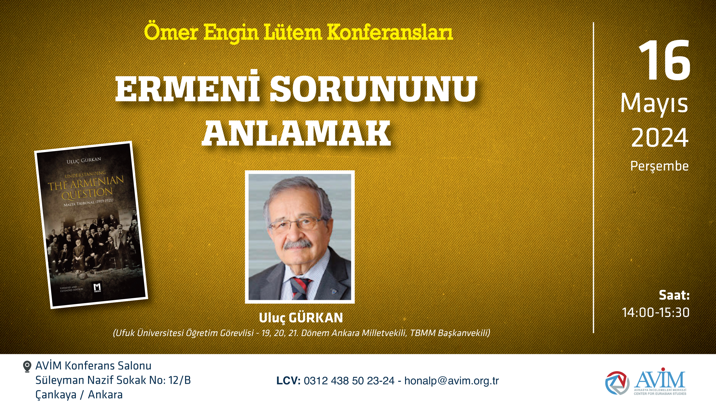 2024 yılı Ömer Engin Lütem Konferanslarının beşincisi Uluç Gürkan’ın konuşmacı olduğu “Ermeni Sorununu Anlamak” başlıklı konferans 16 Mayıs 2024 Perşembe günü gerçekleşmiştir.