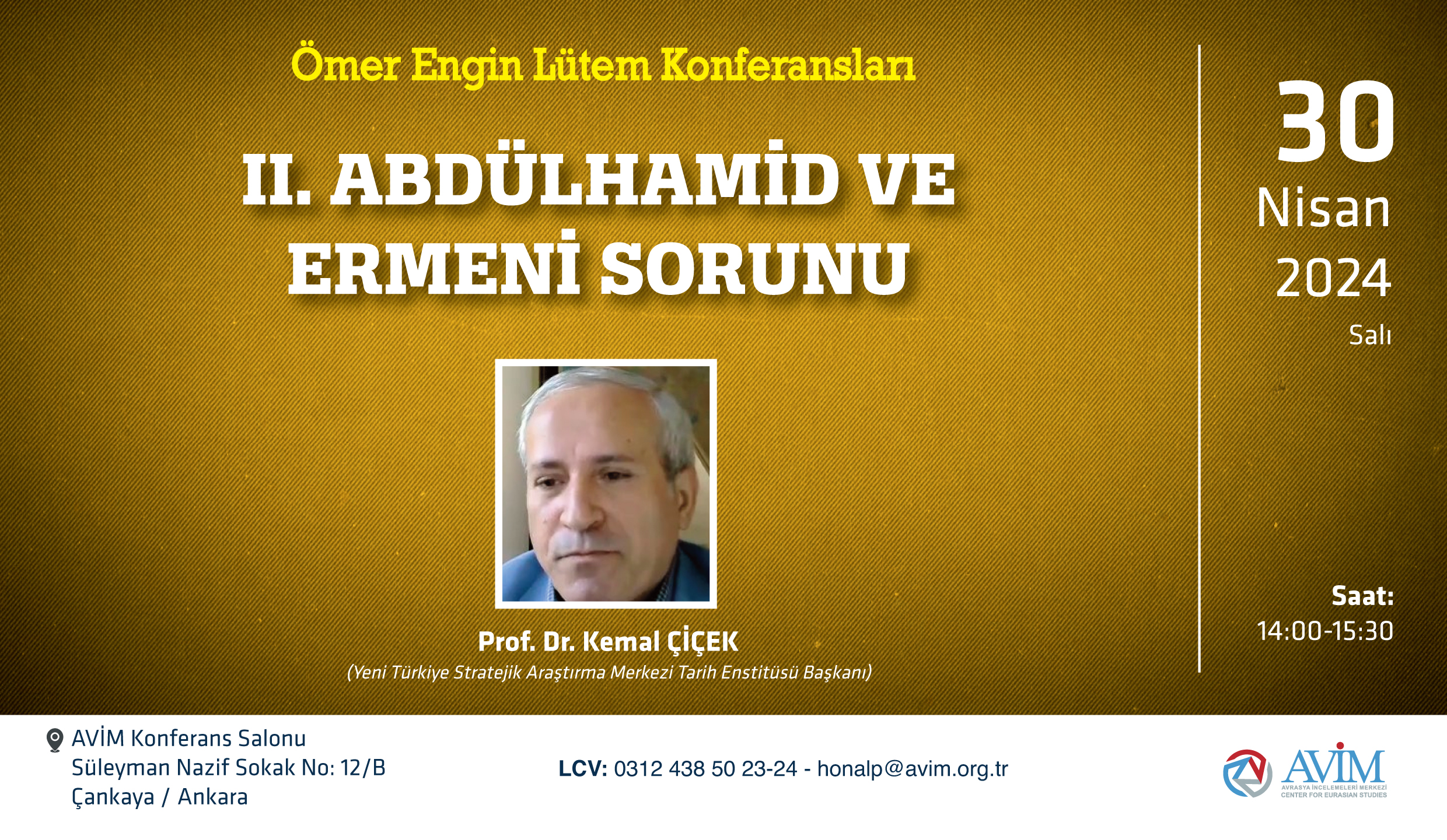 2024 yılı Ömer Engin Lütem Konferanslarının dördüncüsü Prof. Dr. Kemal Çiçek’in konuşmacı olacağı “II. Abdülhamid ve Ermeni Sorunu” başlıklı konferans 30 Nisan 2024 Salı günü gerçekleşecektir.