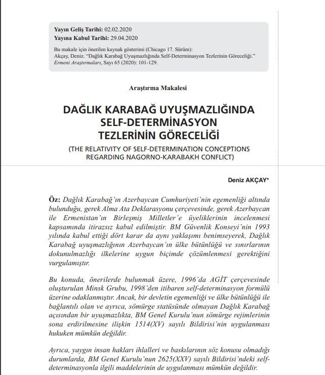 DAĞLIK KARABAĞ UYUŞMAZLIĞINDA SELF-DETERMİNASYON TEZLERİNİN GÖRECELİĞİ -
