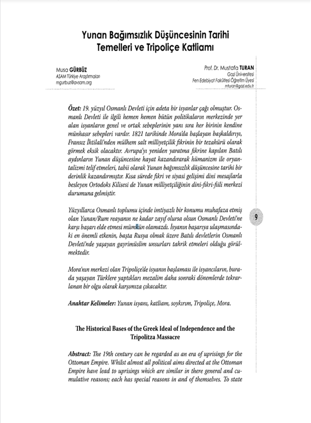 YUNAN BAĞIMSIZLIK DÜŞÜNCESİNİN TARİHİ TEMELLERİ VE TRİPOLİÇE KATLİAMI -
