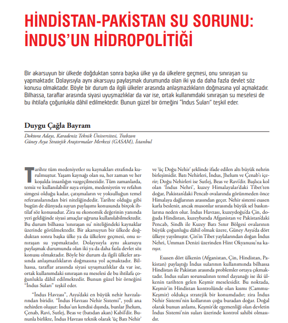 HİNDİSTAN-PAKİSTAN SU SORUNU: İNDUS’UN HİDROPOLİTİĞİ -