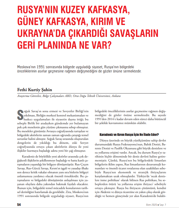 “KARADENİZ’İ ELDE TUTMAK İÇİN: RUSYA’NIN KUZEY KAFKASYA, GÜNEY KAFKASYA, KIRIM VE UKRAYNA’DA ÇIKARDIĞI SAVAŞLARIN GERİ PLANINDA NE VAR?” -