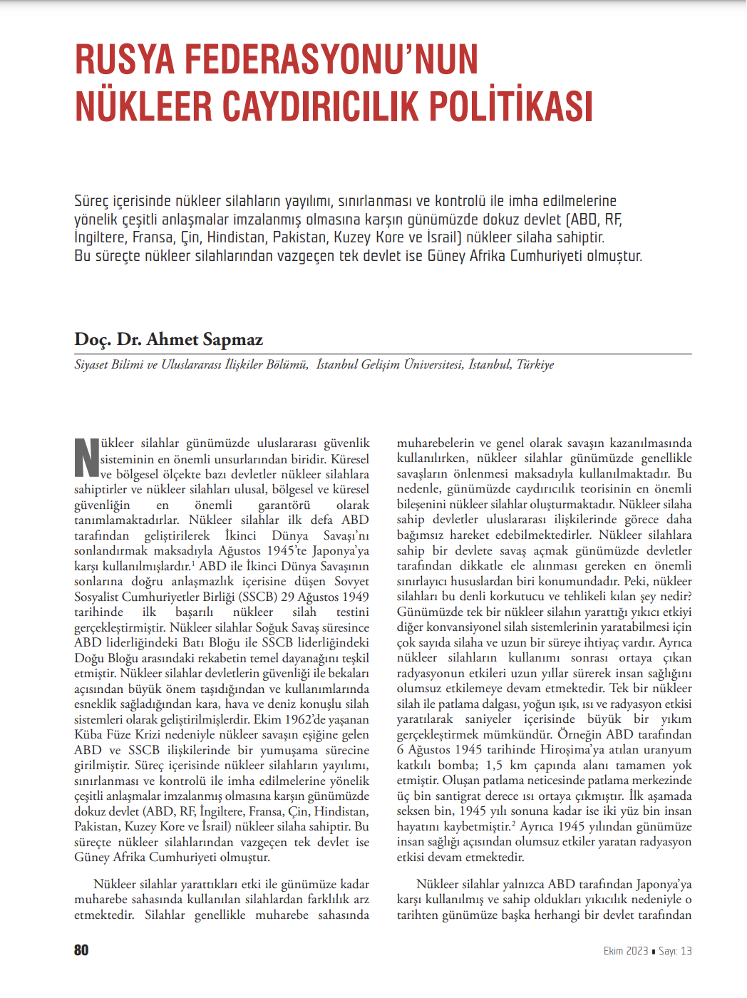 RUSYA FEDERASYONU’NUN NÜKLEER CAYDIRICILIK POLİTİKASI -