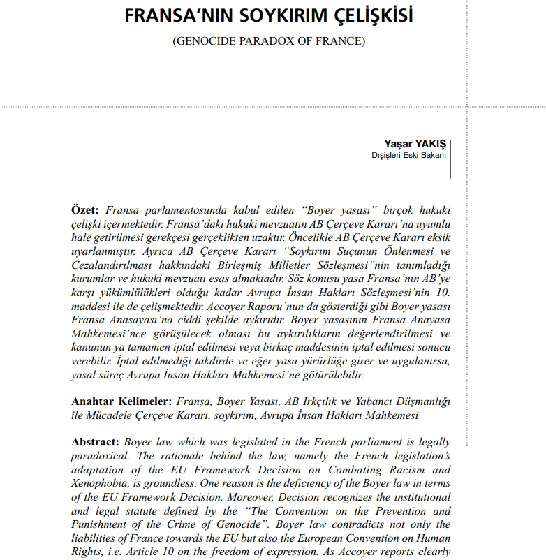 FRANSA’NIN SOYKIRIM ÇELİŞKİSİ -