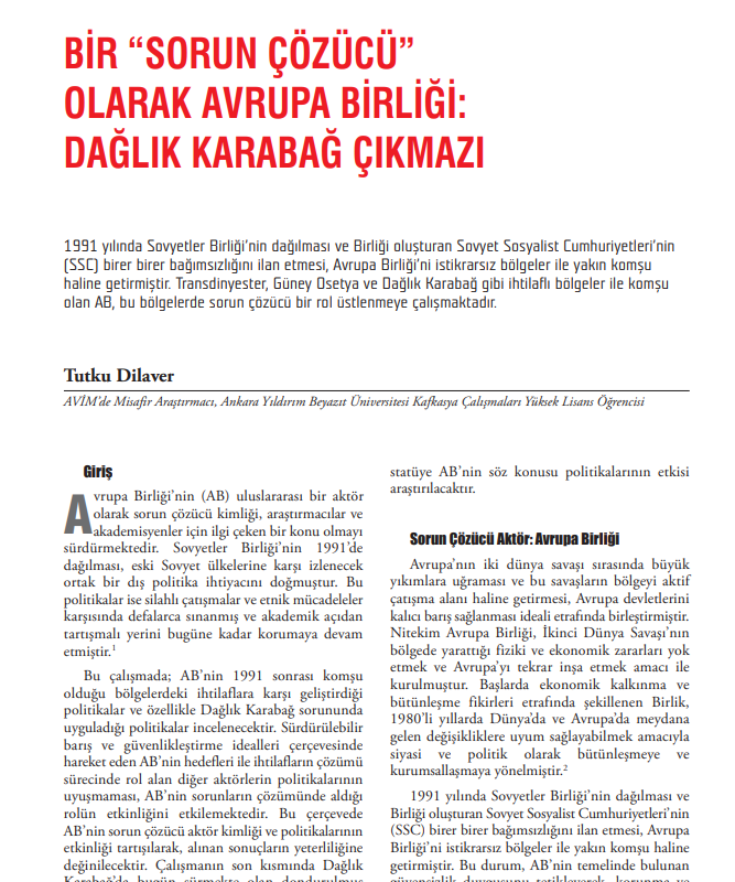 BİR “SORUN ÇÖZÜCÜ” OLARAK AVRUPA BİRLİĞİ: DAĞLIK KARABAĞ ÇIKMAZI -