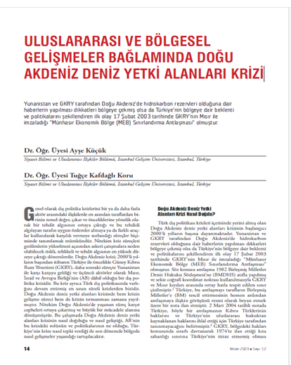 ULUSLARARASI VE BÖLGESEL GELİŞMELER BAĞLAMINDA DOĞU AKDENİZ DENİZ YETKİ ALANLARI KRİZİ -