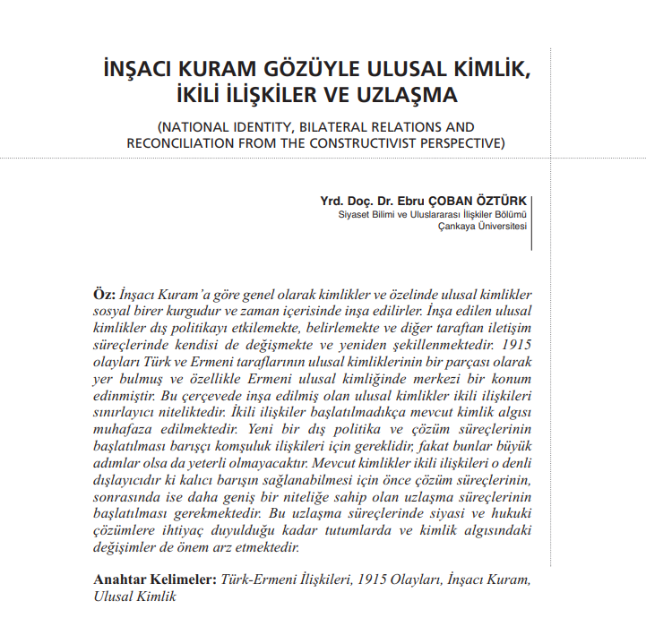 İNŞACI KURAM GÖZÜYLE ULUSAL KİMLİK, İKİLİ İLİŞKİLER VE UZLAŞMA -