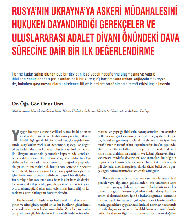 RUSYA’NIN UKRAYNA’YA ASKERİ MÜDAHALESİNİ HUKUKEN DAYANDIRDIĞI GEREKÇELER VE ULUSLARARASI ADALET DİVANI ÖNÜNDEKİ DAVA SÜRECİNE DAİR BİR İLK DEĞERLENDİRME -