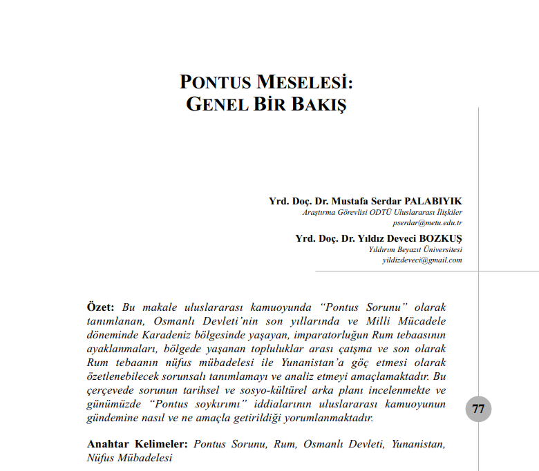 PONTUS MESELESİ: GENEL BİR BAKIŞ -