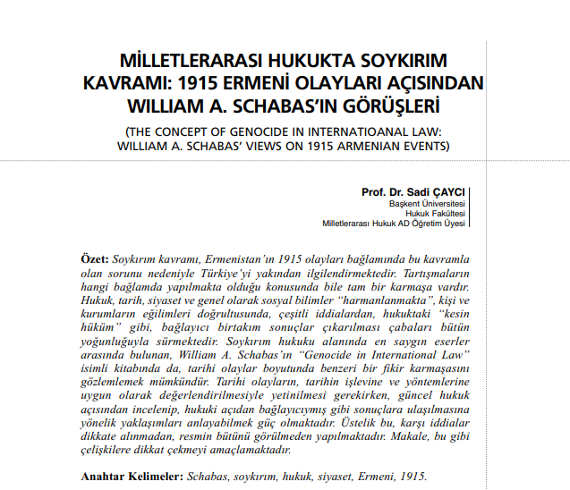 MİLLETLERARASI HUKUKTA SOYKIRIM KAVRAMI: 1915 ERMENİ OLAYLARI AÇISINDAN WILLIAM A. SCHABAS’IN GÖRÜŞLERİ -