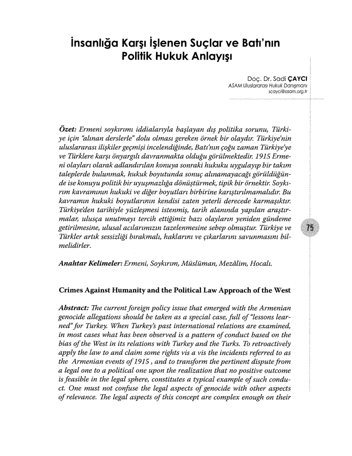 "İNSANLIĞA KARŞI İŞLENEN SUÇLAR VE BATI'NIN POLİTİK HUKUK ANLAYIŞI " BAŞLIKLI MAKALE