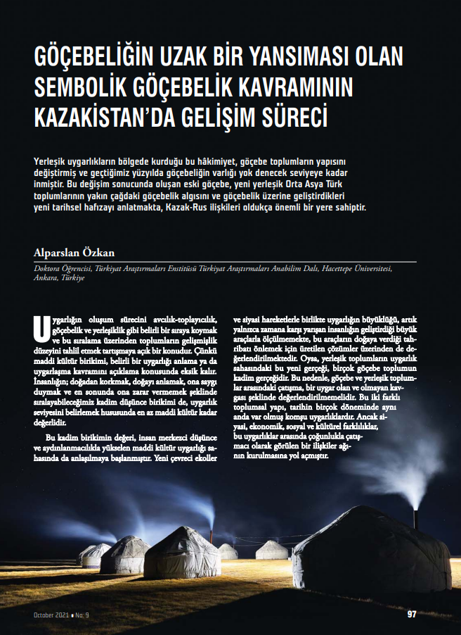 "GÖÇEBELİĞİN UZAK BİR YANSIMASI OLAN SEMBOLİK GÖÇEBELİK KAVRAMININ KAZAKİSTAN’DA GELİŞİM SÜRECİ" BAŞLIKLI MAKALE -