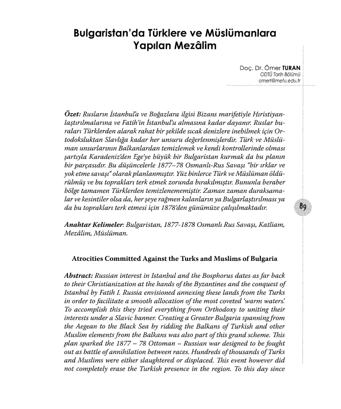 "BULGARİSTAN‘DA TÜRKLERE VE MÜSLÜMANLARA YAPILAN MEZALİM" BAŞLIKLI MAKALE -