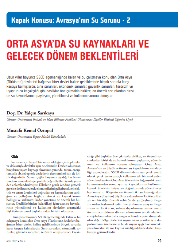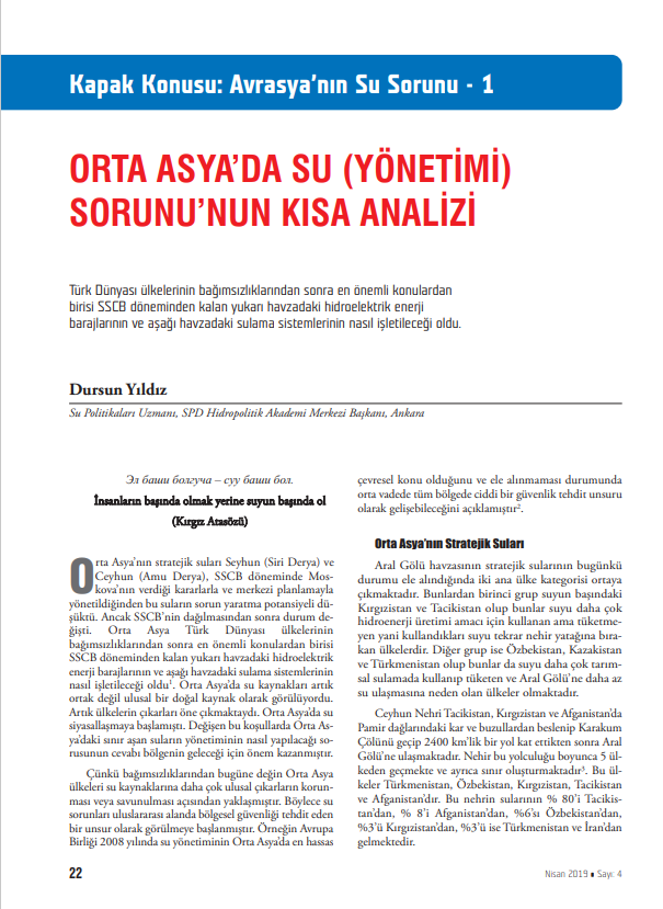"ORTA ASYA’DA SU (YÖNETİMİ) SORUNU’NUN KISA ANALİZİ" BAŞLIKLI MAKALE -