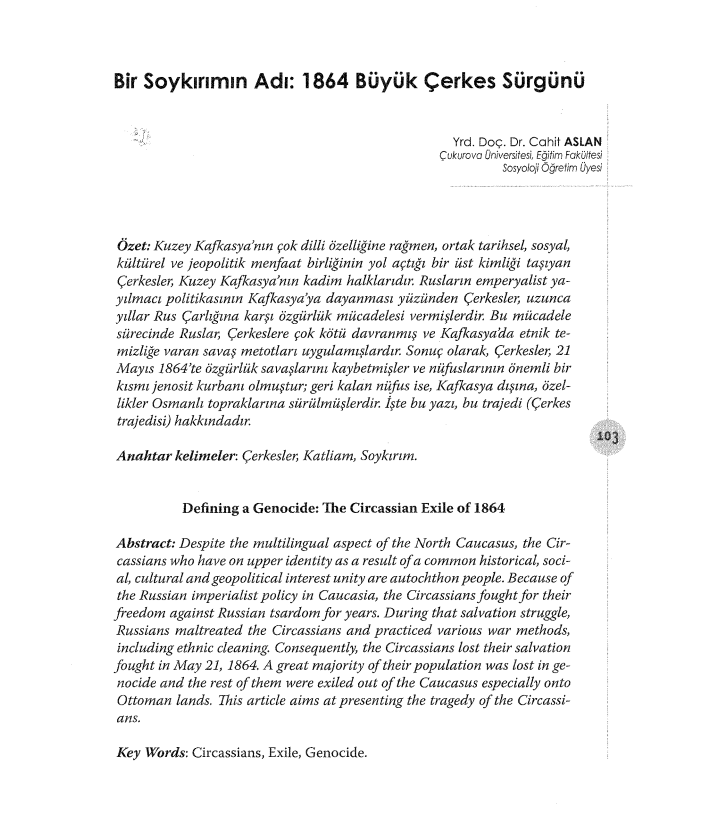 "BİR SOYKIRIMIN ADI: 1864 BÜYÜK ÇERKES SÜRGÜNÜ" BAŞLIKLI MAKALE -