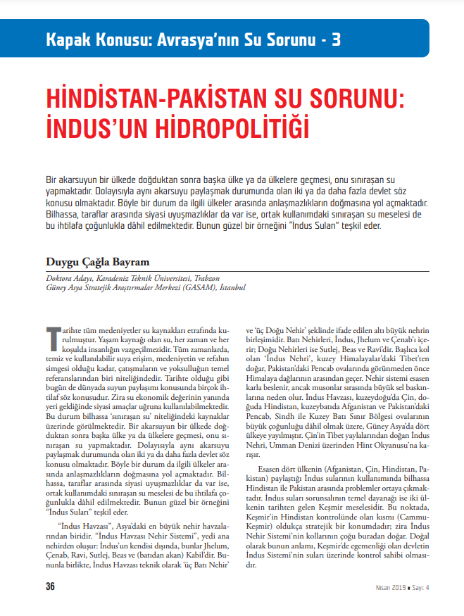 "HİNDİSTAN-PAKİSTAN SU SORUNU: İNDUS’UN HİDROPOLİTİĞİ" BAŞLIKLI MAKALE -