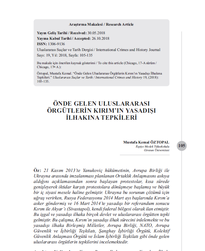 ÖNDE GELEN ULUSLARARASI ÖRGÜTLERİN KIRIM’IN YASADIŞI İLHAKINA TEPKİLERİ -