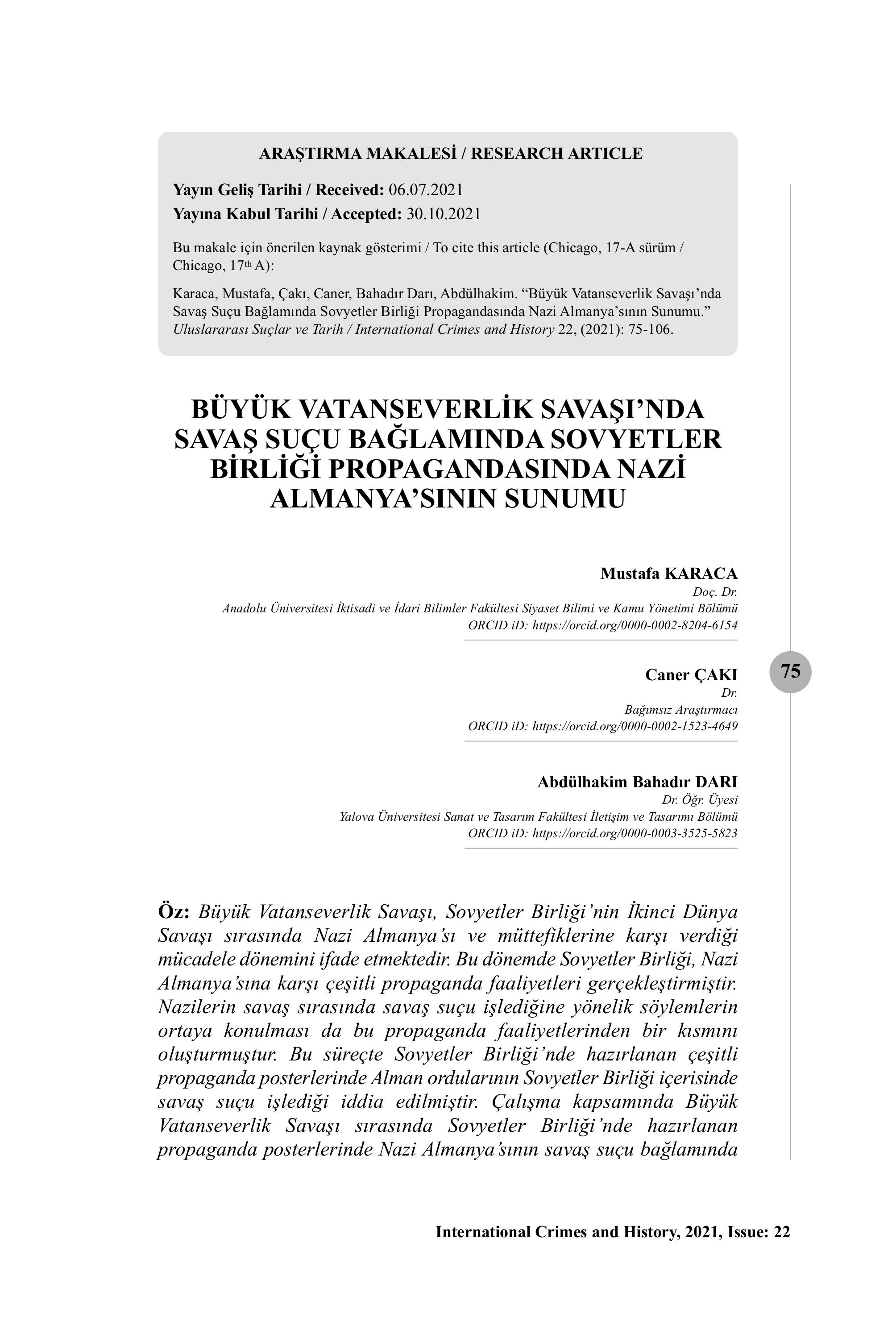 BÜYÜK VATANSEVERLİK SAVAŞI’NDA SAVAŞ SUÇU BAĞLAMINDA SOVYETLER BİRLİĞİ PROPAGANDASINDA NAZİ ALMANYA’SININ SUNUMU -