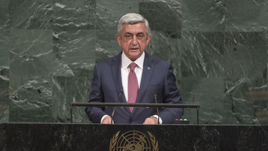 Sarkisyan, Azerbaycan hükümetini, Ermenistan tarafından işgâl edilmiş Azerbaycan topraklarında gayri meşru rejimin, o bölge halkının kendi geleceğine istediği şekilde karar verme hakkını tanımaya ve saygı duymaya çağırmıştır. Bu yaklaşım BM Genel Kurulu’nun konumu ile çelişkilidir. Sarkisyan buna rağmen bu ifadeleri BMGK’da beyan ederek sağduyudan uzak bir tutum gösterebilmiştir.