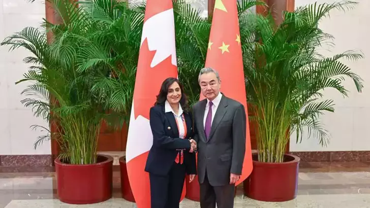 ÇİN DIŞİŞLERİ BAKANI WANG, KANADALI MEVKİDAŞIYLA BİR ARAYA GELDİ