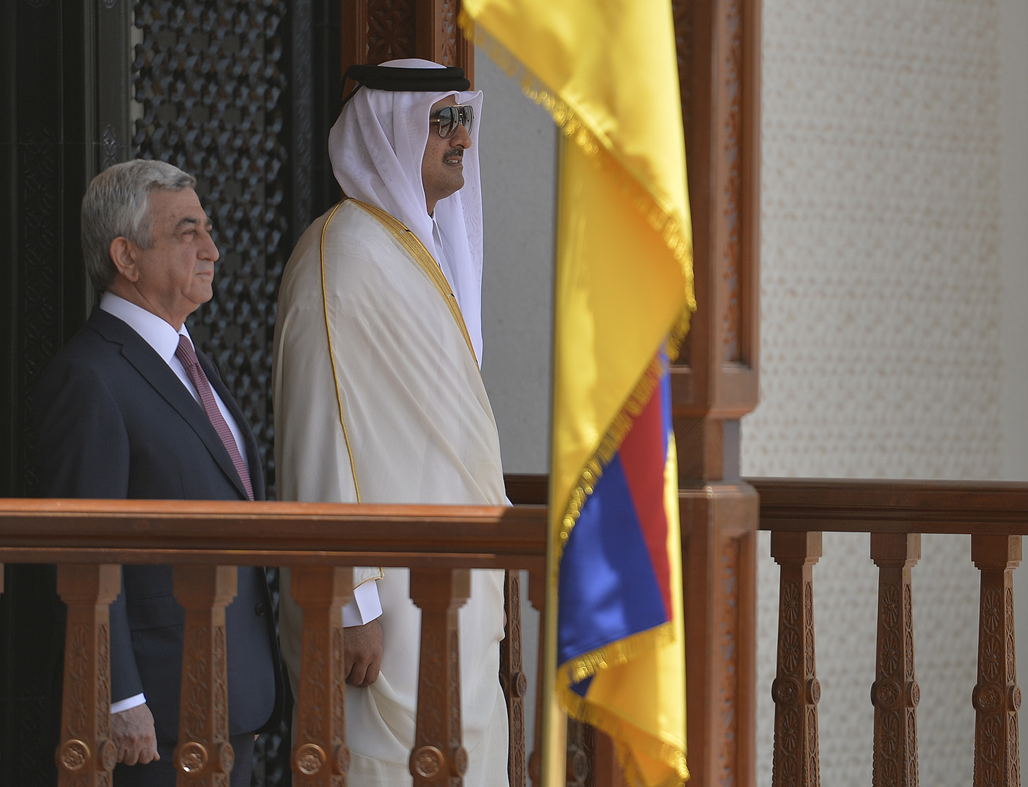 Mayıs 2017 ortalarında Katar’ın başkenti Doha’ya ilk resmi ziyaretini gerçekleştiren Ermenistan Cumhurbaşkanı Sarkisyan, Katar Emiri Tamim Bin Hamad Al Tani’yle görüşmüştür. Görüşmede liderler, iki ülke arasında başta ticari-ekonomik olmak üzere ilişkilerin geliştirilmesi, vize serbestisi ve çok taraflı işbirliğinin geliştirilmesi gibi konuları konuşmuşlardır. Ayrıca, Ermenistan tarafının teklifi üzerine iki tarafın özellikle Ermenistan’ın Avrasya Ekonomik Birliği ülkelerine transit imkanlarından faydalanılmasını da içeren çeşitli yatırım projeleri hakkında görüştükleri bildirilmiştir.[1]